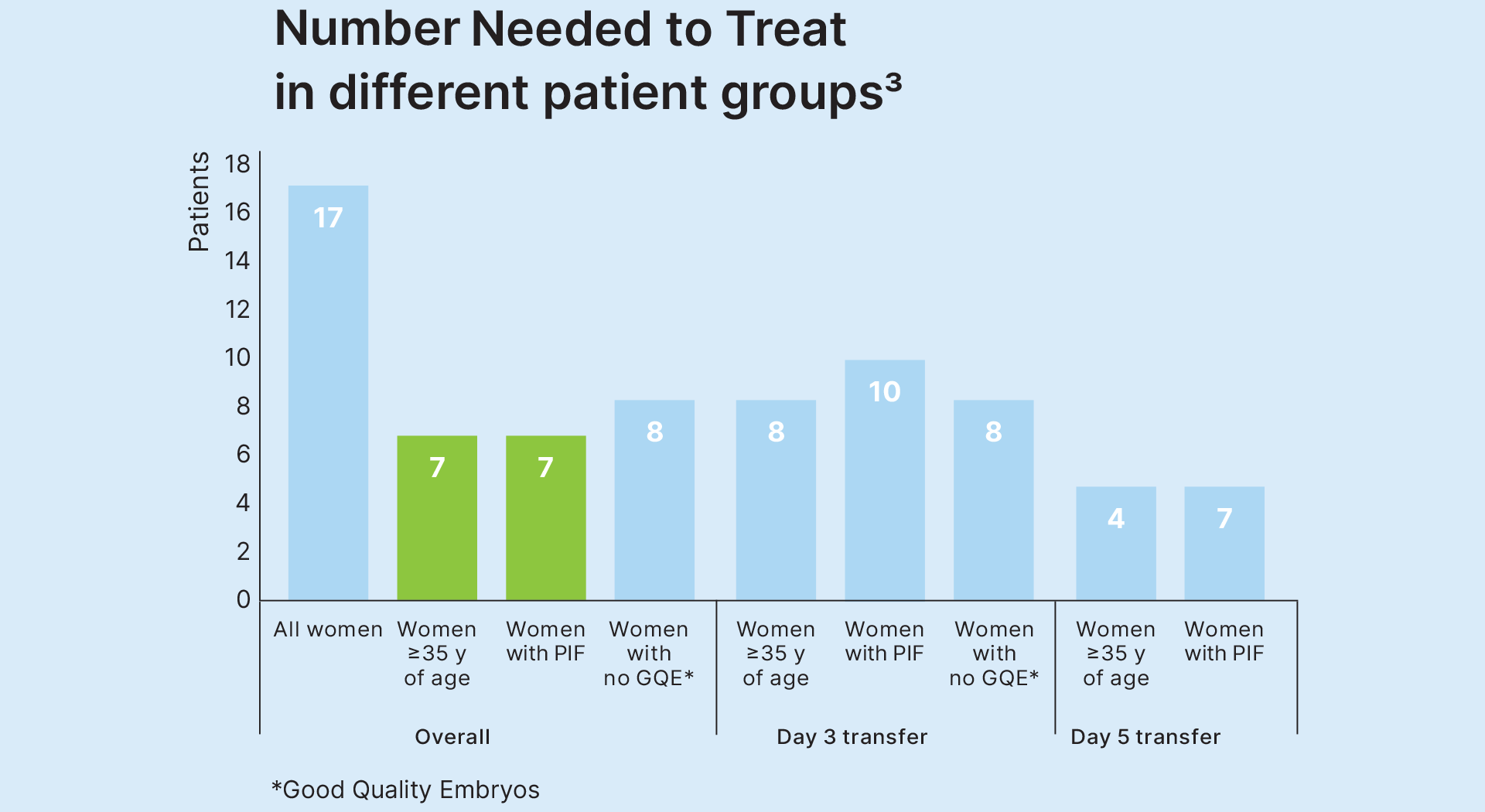 The number needed to treat varies between patient groups, and the strongest benefit is seen in women ≥35 years of age and women with Previous Implantation Failures (PIF)3.