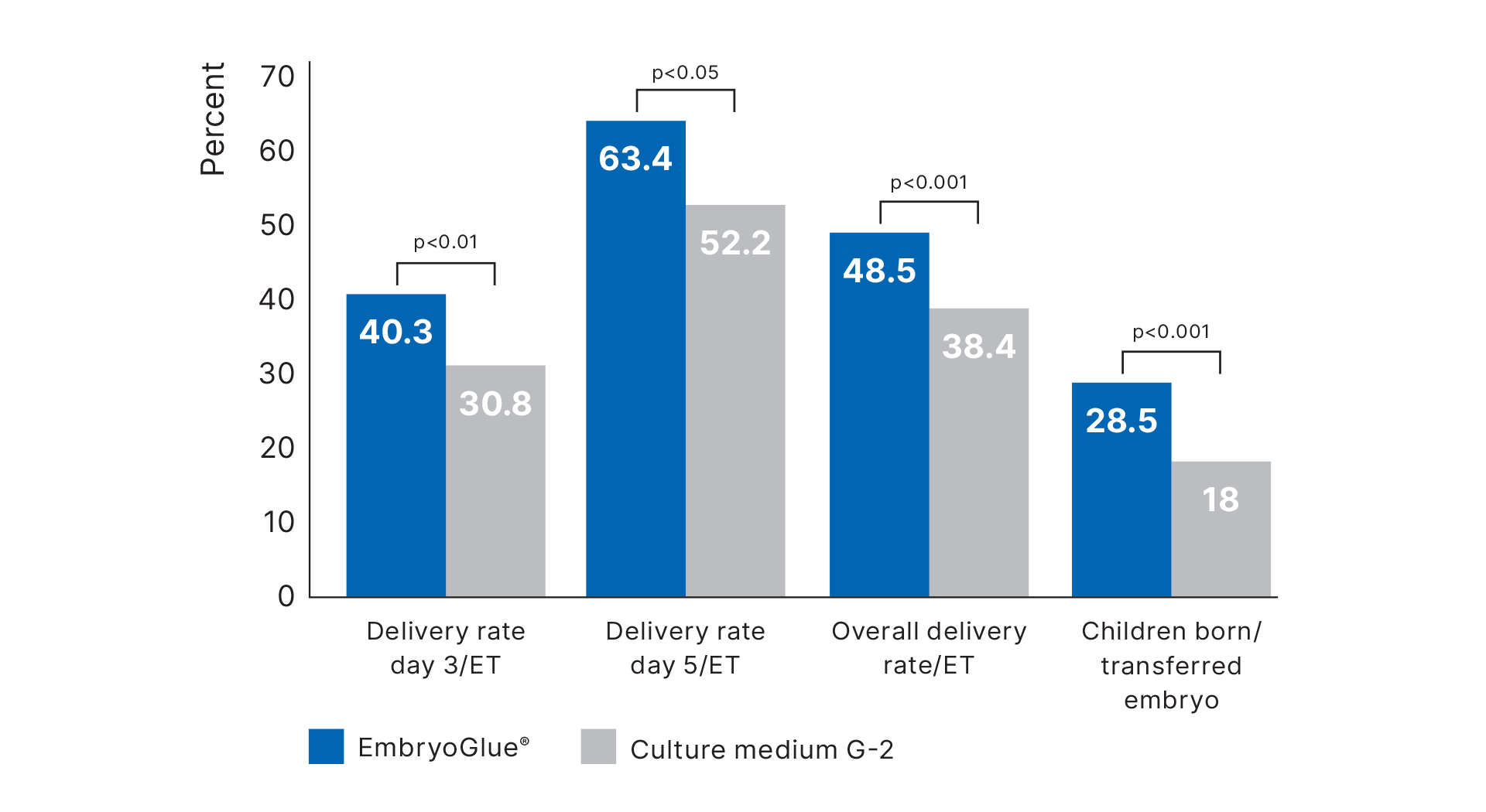 The results showed a significantly increased delivery rate with the use of EmbryoGlue independent of day of transfer3,19.